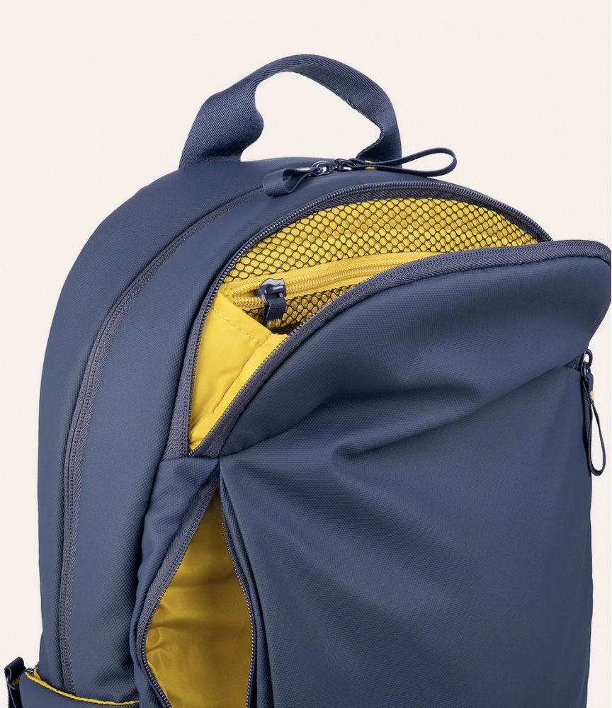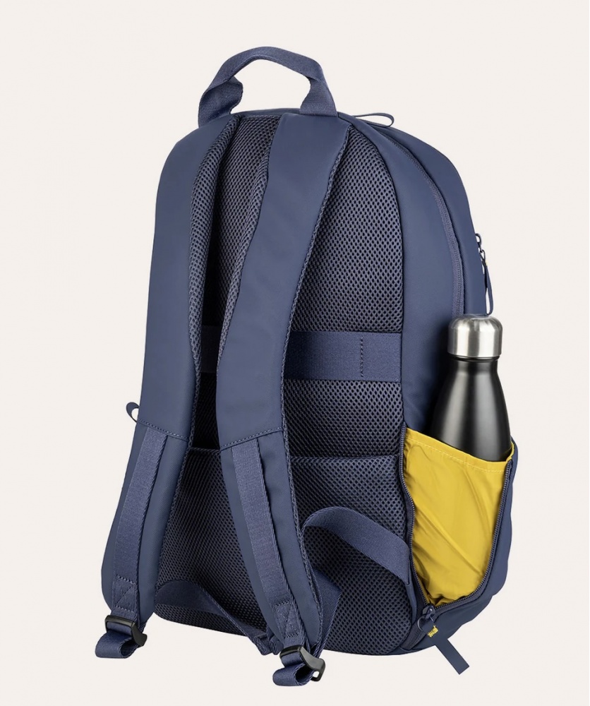 Backpack designed for 15.6" laptops and 16" MacBook Pros, made from recycled, coated fabric to ensure water resistance.