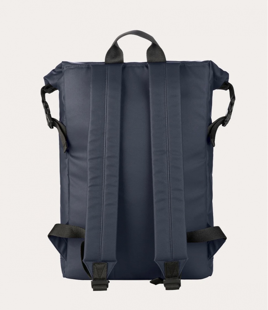 Backpack with roll-top closure for 15.6" laptops and 16" MacBooks, made from recycled, water-resistant coated fabric. Featuring a large single compartment, the Rollo backpack includes an internal laptop pocket, an external pocket for accessories, and padded, adjustable shoulder straps, making it comfortable and practical for both work and leisure