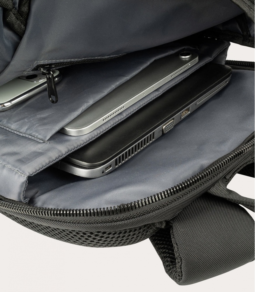 Made with high-density fabric, the Terras backpack’s pockets are very well organized: there are two inner pockets with protective padding for tablets and laptops, two roomy front pockets of different heights, as well as two side pockets for an umbrella and a water bottle.
