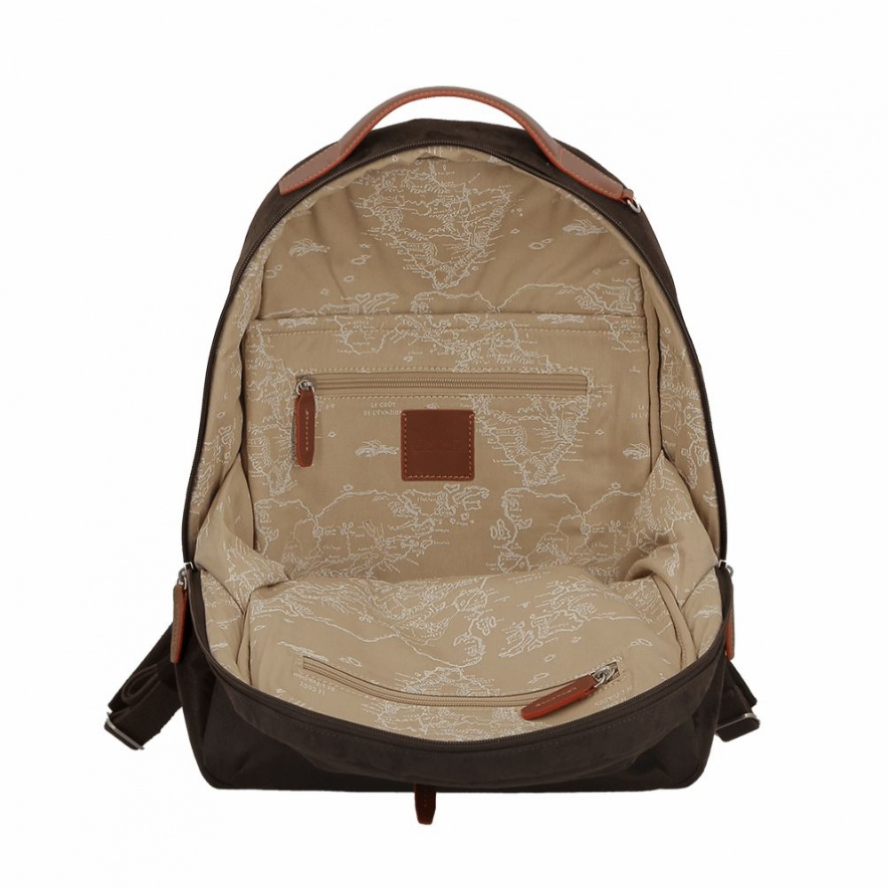 The inimitable velvet touch of the coated canvas that acquires a patina over time and the full-grain cowhide leather trim give durability and functionality to the entire collection.
