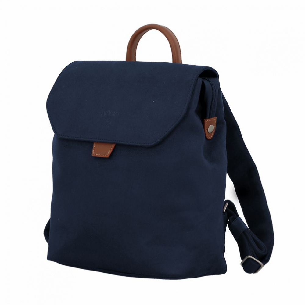 Polyester, velvety to the touch, genuine leather trim, polyester and cotton lining.