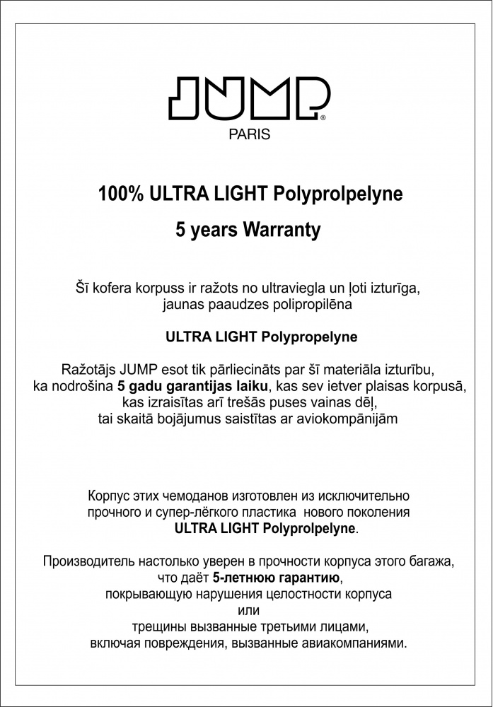 JUMP company are so confident in the strength of this material that the 5 years warranty with this case covers any breaks or cracks in the shell caused by a third party including airline damage.