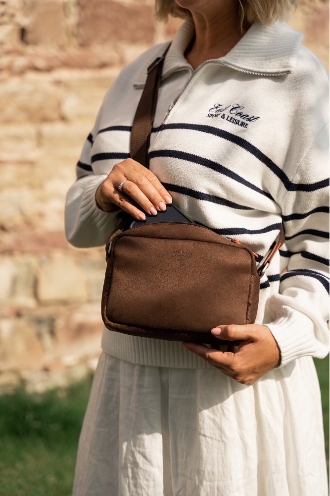 Material: Premium Polyester, velvety to the touch, genuine leather trim, polyester and cotton lining.