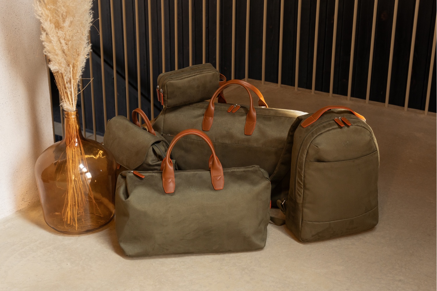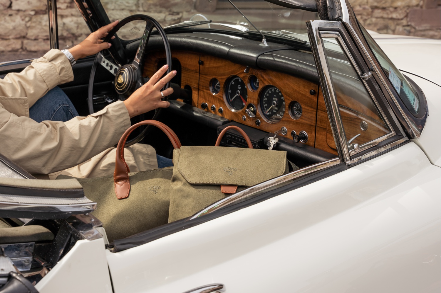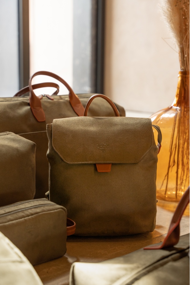 The inimitable velvet touch of the coated canvas that acquires a patina over time and the full-grain cowhide leather trim give durability and functionality to the entire collection.